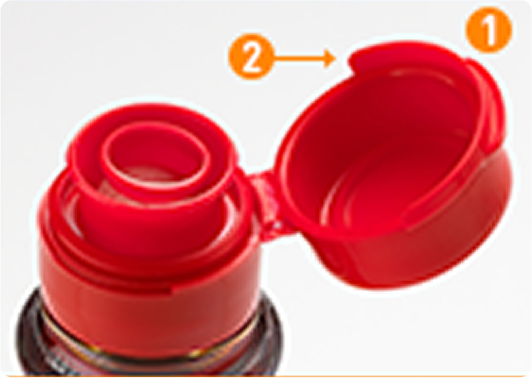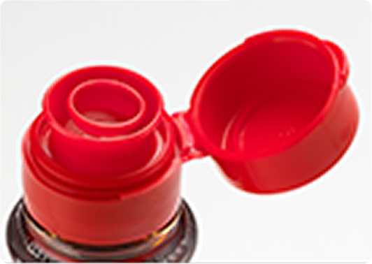 ①指が接する面を大きくし、ツバ両サイドに「角」を設けキャップの開け閉めがしやすくなる形状に変更しました。