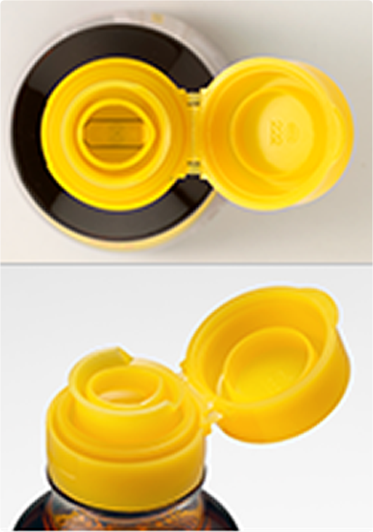 ④注ぎ口(後方)のキャップが噛み込みして閉まりにくくすることを防止する形状に改良しました。